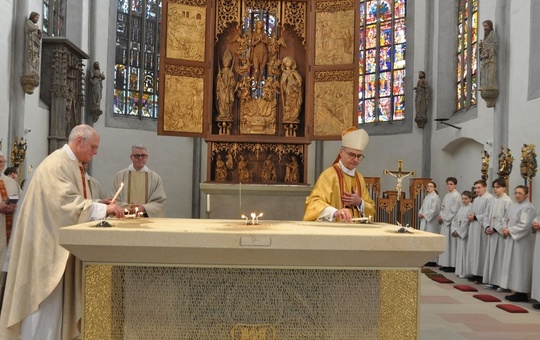 Nach sechs Jahren Bauzeit ist die Stadtpfarrkirche wieder geöffnet. Bischof Franz weihte den Altar.
