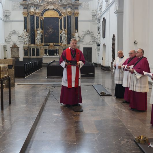 Bei der feierlichen Verabschiedung der Häupter der Frankenapostel in Würzburg betonte der Generalvikar, dass die Glaubensfreude und Menschenfreundlichkeit Kilians und seiner Gefährten bis heute nachwirkten. „Bitten wir um den Segen für eine sichere Reise und Rückkehr der Reliquien und aller Pilgerinnen und Pilger, die sie begleiten. Mögen die heiligen Frankenapostel auch in ihrer Heimat den Glauben stärken, wie sie es seit Jahrhunderten durch ihr Zeugnis und Vorbild im Frankenland tun.“ Zudem komme das Bistum mit der Reise der Reliquien in deren irische Heimat einem Wunsch nach, der von irischer Seite schon seit zehn Jahren mehrfach geäußert worden sei.