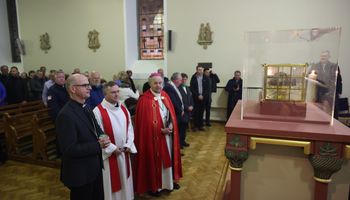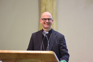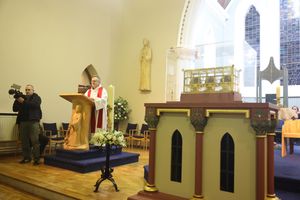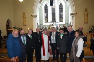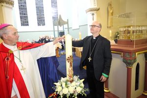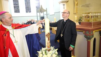 „Uns erfüllt heute eine besondere feierliche Stimmung. Kilian ist mit seinen Gefährten nach Hause zurückgekehrt. Heute sind wir alle Sankt Kilian“, sagt Father Prior. Die Hoffnung, dass Gott den Menschen Glauben und Mut schenkt, verbinde die Menschen der Gegenwart mit dem Frankenapostel und seinen Gefährten. Bischof Hayes legt in seiner Predigt die Berufung der Jünger Jesu am See Genesareth aus. „Wie die Jünger sind wir aufgerufen, uns mit Jesus auf den Weg zu machen, auch wenn wir nicht wissen, was uns unterwegs erwartet.“ Das bedeute auch, den Nächsten vorbehaltlos auf der Pilgerschaft zu begleiten. „Dazu fordert uns Papst Franziskus auf“, betont Bischof Hayes. Schließlich dankt er Bischof Jung, dem Würzburger Domkapitel und der ganzen Diözese Würzburg, die den lang gehegten Wunsch der Rückkehr der Reliquien Kilians und seiner Gefährten nach Mullagh ermöglicht haben.