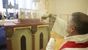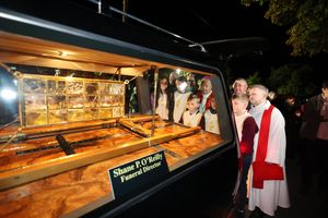 Während die Pilgergruppe aus Deutschland mit Bussen ins Hotel zurückkehrt, halten in der Kilianskirche von Mullagh die ganze Nacht hindurch bis zur Morgenmesse um sieben Uhr im Wechsel Gruppen aus dem Ort und den umliegenden Pfarreien im Gebet Wache beim Reliquienschrein. Es sei kein Problem gewesen, dafür Leute zu finden, berichtet der Pfarrer: Der lang ersehnte Besucher Kilian samt Gefährten ist endlich daheim.
