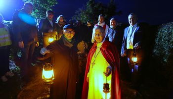 Emotionale Ankunft der Reliquien der Frankenapostel in Kilians Geburtsort Mullagh – Nächtliche Prozession von der Kiliansquelle vorbei am Berg und See des Dorfs zur Pfarrkirche