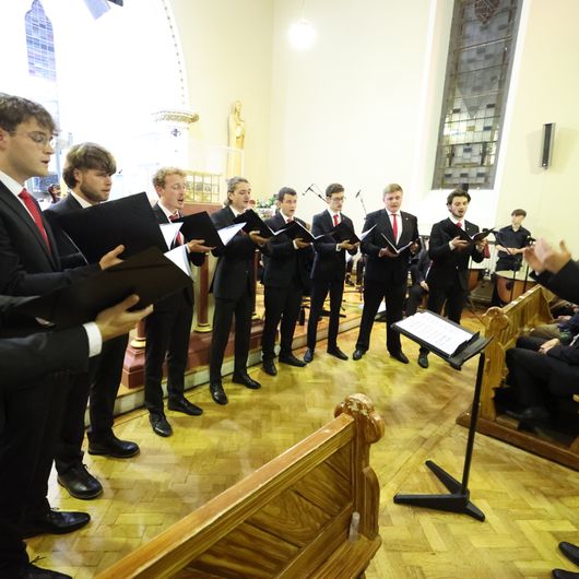 Einen wesentlichen Teil des Programms bestritten die Jungen Herren der Würzburger Domsingknaben. Abwechselnd unter der Leitung von Domkapellmeister Alexander Rüth und Domkantor Julian Beutmiller sangen sie Werke unter anderem von Johann Evangelist Habert, Felix Mendelssohn Bartholdy sowie, passend zum Festtag des heiligen Franziskus, „Seigneur“, die Vertonung eines Gebets des Heiligen aus der Feder von Francis Poulenc.