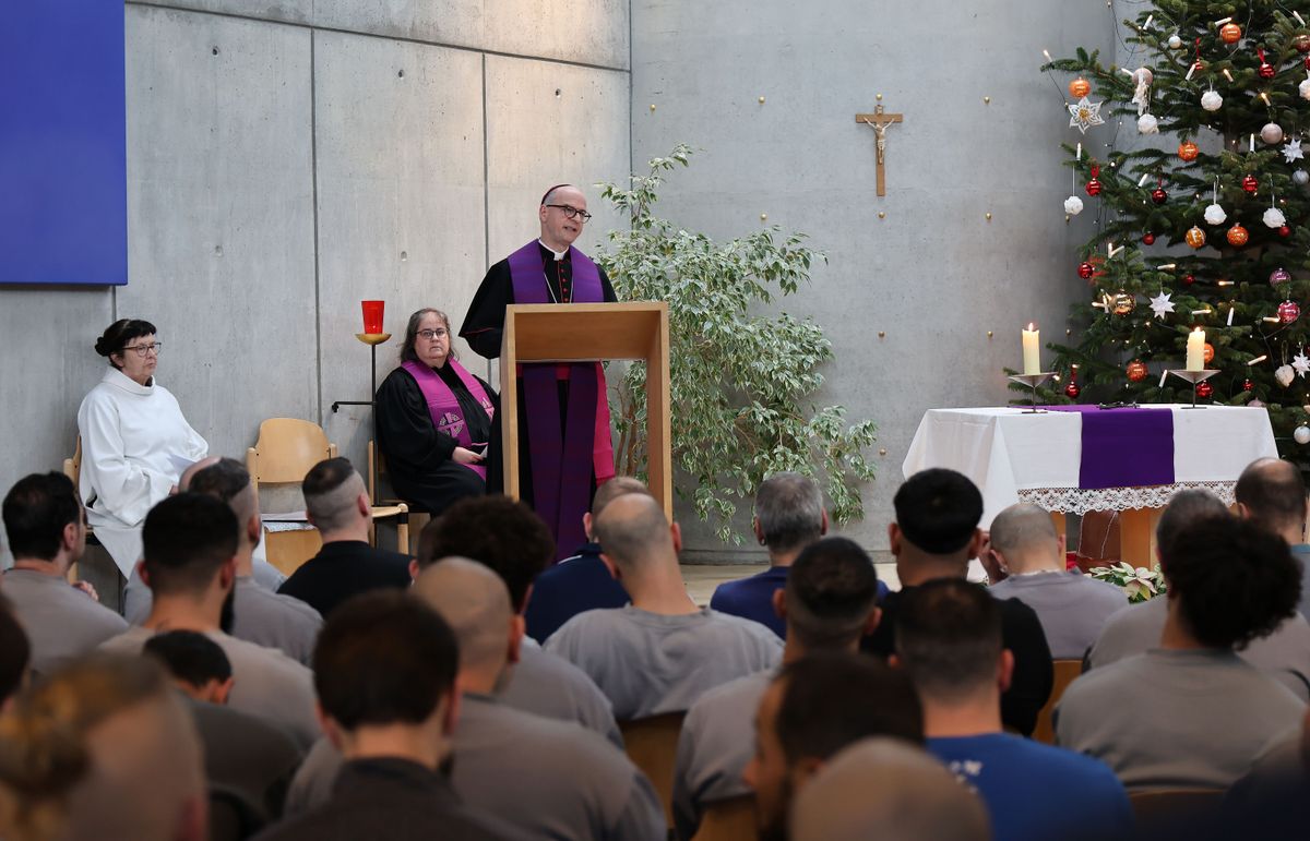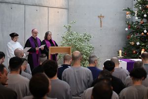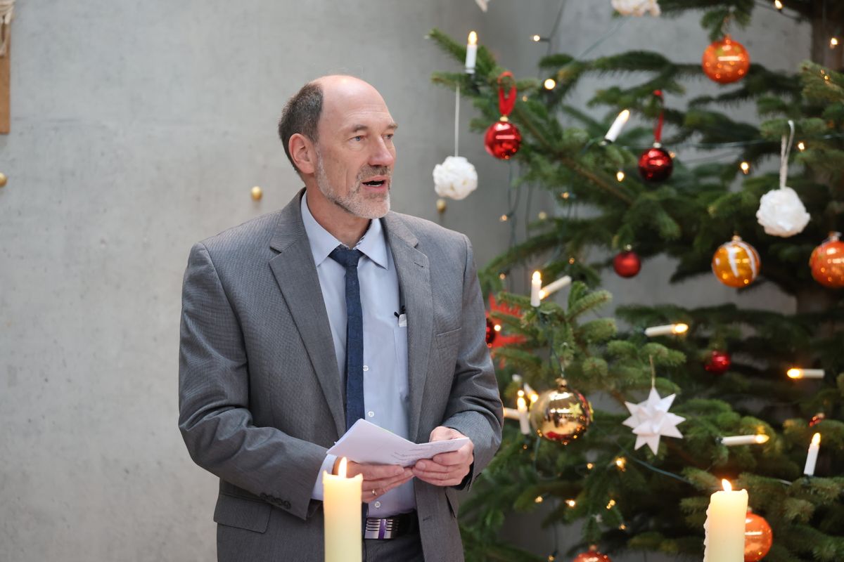 JVA-Chef Mann wünscht den Gefangenen am Ende des Gottesdienstes ein frohes Weihnachtsfest. „Es ist nicht einfach, Weihnachten ohne Freunde und Familie verbringen zu müssen. Kümmern Sie sich bitte umeinander, wenn Sie merken, jemand braucht Trost. Und denken Sie bitte auch daran, dass auch meine Mitarbeiterinnen und Mitarbeiter lieber an Weihnachten bei ihren Familien wären, aber ihren Dienst tun. Lassen Sie uns gemeinsam ein friedvolles Fest feiern.“