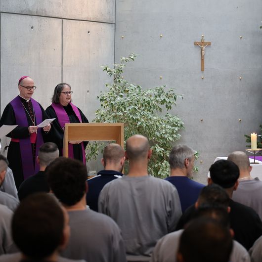 Die Fürbitten bringen zur Sprache, was die Menschen hinter Gittern bewegt: Sie beten unter anderem für Menschen, die von ihrer Familie getrennt sind, die einsam und ausgegrenzt sind, für die Opfer von Krieg und Vertreibung, für die Verantwortlichen in Politik und Gesellschaft.