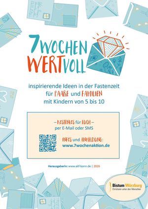 Jede angemeldete Familie beziehungsweise jedes angemeldete Paar erhält für jede Woche der Fastenzeit kostenfrei einen digitalen Brief mit Ideen und spirituellen Impulsen für das Miteinander. „Nicht das Verzichten steht im Fokus, sondern das MEHR an gemeinsamer Zeit für Partnerschaft und Familienleben. Sieben Briefe geben vielfältige Anregungen für das Zusammenleben, bieten Anlässe für Gespräche, vermitteln Ideen zum gemeinsamen Ausprobieren und spirituelle Impulse“, heißt es in der Einladung. Dabei geht es um „Werte-Fragen“ wie: Wann erlebe ich Zeit als wertvoll? Welche Werte sind uns heilig? Wie zeigen wir Wertschätzung? Anmeldung für Paare jeden Alters im Internet unter www.7wochenaktion.de, für Familien mit Kindern im Alter von fünf bis zehn Jahren im Internet unter www.elternbriefe.de/7Wochen.