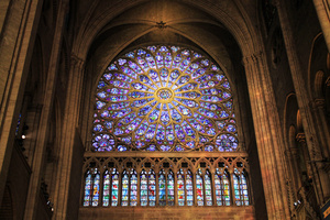 Bei der Wiedereröffnung der „Königin der Kathedralen“ Notre Dame in Paris, blühten die drei großen Rosetten im Westen, Norden und Süden, mit fast zehn Metern Höhe, in frischem Glanz auf. Die Mitte der Südrose, die Rose des Neuen Testamentes, bildet Jesus Christus. Unmittelbar um ihm herum ranken sich 12 Blütenblätter, in der Zahl 12 verborgen, die Drei als Zahl Gottes und die Vier als Zahl der Schöpfung – ein perfekter Ausdruck der Menschwerdung Gottes in die Schöpfung hinein. Christus ist die Mitte und bewegt als Gottmensch Kosmos, Raum, Zeit und Seele. Er bewegt als geheimnisvolle Nabe ein Ganzes.