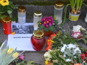 Die Alte Mainbrücke in Würzburg. Mein täglicher Weg zur Arbeit. Etwa in der Mitte der Brücke entdecke ich an diesem Morgen ein Foto des Russen Alexej Nawalny. Gestern erst kam die Nachricht von seinem Tod. Neben seinem Bild liegen bunte Frühlingsblumen. Einige Kerzen brennen.