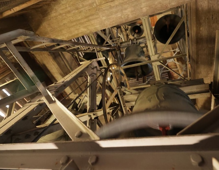 Zusammen mit Ronja Goj ist Kinderreporterin Emira die Stufen hinaufgeklettert. Im Glockenturm hat sie sich die Domglocken von Glockenexperte Ben Schrödererklären lassen.