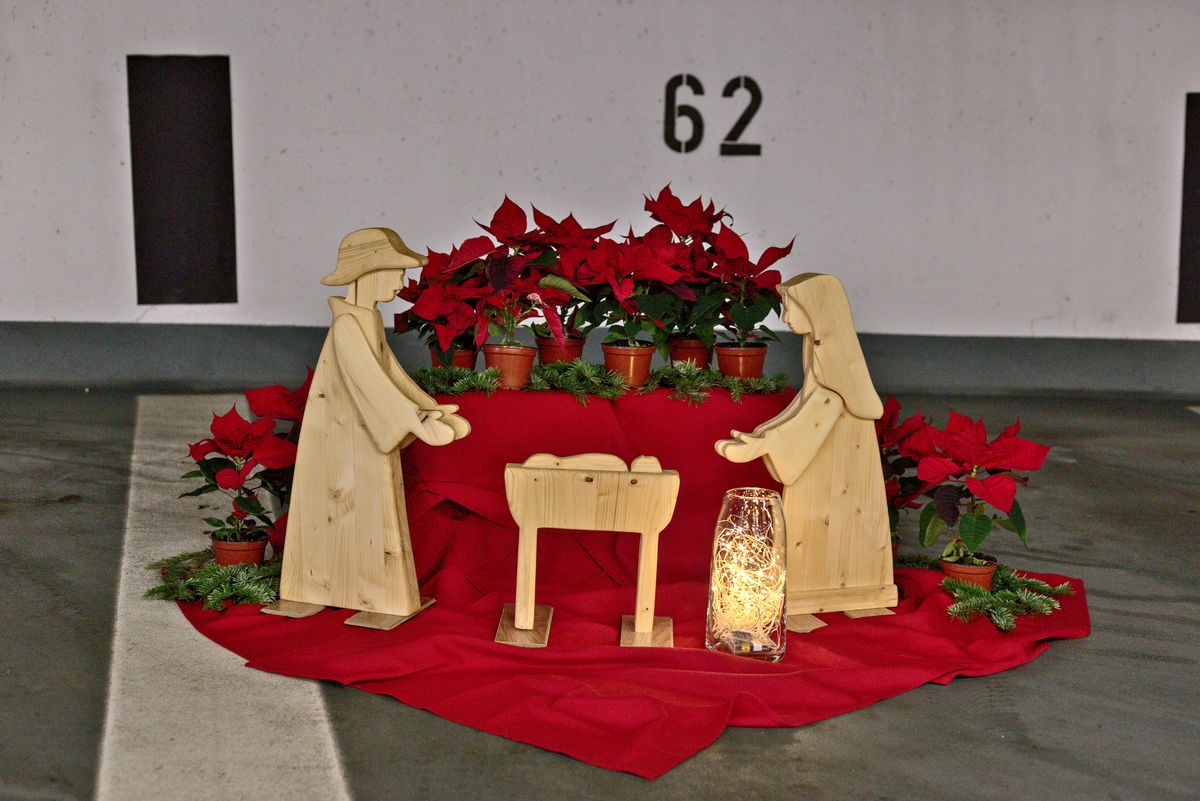 Strenge Hygieneregeln und eine kreative Idee führten dazu, dass die Andacht im Parkhaus unter geradezu biblischen Umständen stattfinde, erklärte Domkapitular Bieber in seinen Einleitungsworten. „Es müssen sich derzeit alle in Listen eintragen und auch viele Herbergen müssen geschlossen bleiben.“ Auch die Wärmestube auf der anderen Straßenseite müsse mit Rücksicht auf Hygieneregeln ihr Angebot stark einschränken. „So findet sich, wie in der Bibel, ein ungewöhnlicher Ort.“