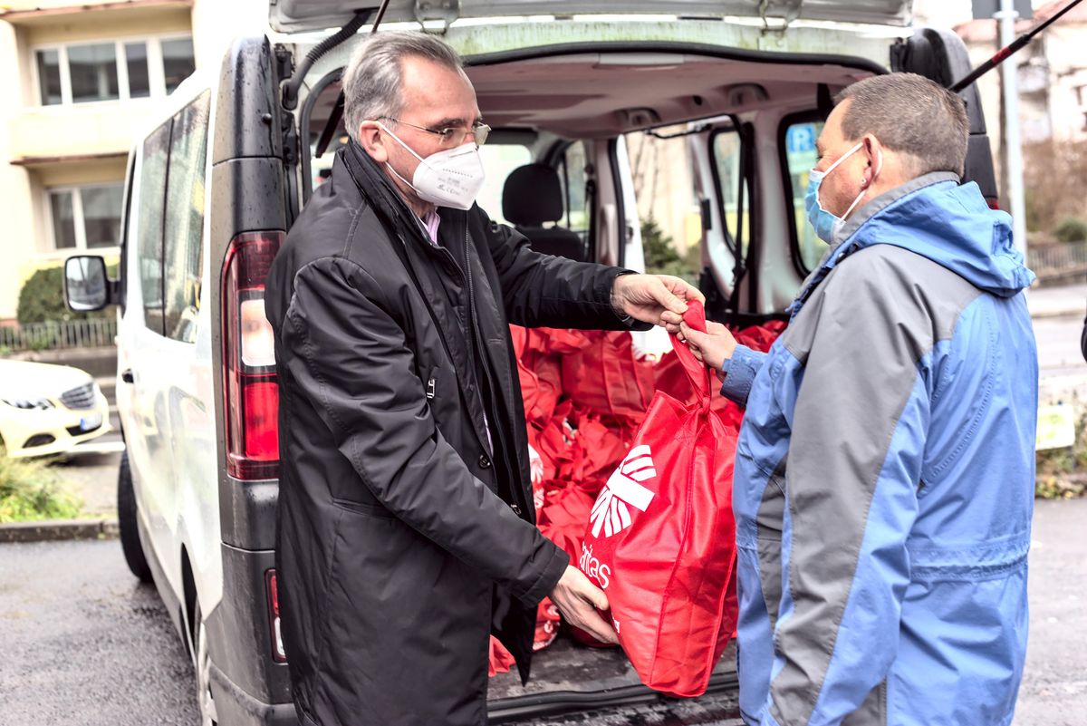 Nachdem Bieber das Weihnachtsevangelium nach Lukas vorgetragen hatte, legte Barbara Stehmann, Mitarbeiterin bei Caritas-Don Bosco und ebenfalls engagiert in der Obdachlosenhilfe, die Weihnachtserzählung anhand einer Geschichte aus. Die Dunkelheiten unseres Lebens könnten erhellt werden, wenn wir in das Gesicht eines anderen Menschen blicken – auch wenn es derzeit häufig von einer Maske bedeckt sei, sagte Stehmann. „Viele von Ihnen gehen gerne in die Wärmestube, weil es ein Ort ist, in dem sie liebe und vertraute Menschen treffen können.“ Zu Weihnachten erhalte diese Begegnung mit anderen Menschen eine besondere Bedeutung, schließlich sei es das Fest, an dem wir uns erinnerten, dass in jedem Menschen auch Gottes Geist lebe.