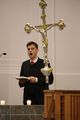 Alexander Sitter von der Unterabteilung Weltkirche des Bistums Würzburg überreichte den Vertretern der Gottesdienstorte Symbole der Erinnerung an und Verbundenheit mit den Menschen auf dem Land in Lateinamerika und der Karibik. Sie erhielten unter anderem Maispflanzen und -samen. Diese stehen für die Erde, die Schöpfung und die Verantwortung der Menschen, damit Leben möglich ist und bleibt. Außerdem erhielten diese jeweils Fahnen für die jeweilige Kirche mit dem Motiv des diesjährigen Adveniat-Aktionsplakats sowie einem Motiv aus dem brasilianischen Partnerbistum Óbidos, mit dem die besondere Verbundenheit der beiden Diözesen deutlich wird. „Ein Tuch für den Altar mit der farblichen Gestaltung aus der Amazonassynode erinnert an die Menschen in Amazonien und unsere Sorge für sie“, erläuterte Sitter.
