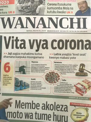 "Church enters fight“ – „Die Kirche steigt in den Kampf ein“, so titelt am Montag, 23.03.2020 die DAILY NEWS, eine der größten Tageszeitungen in Tansania.
