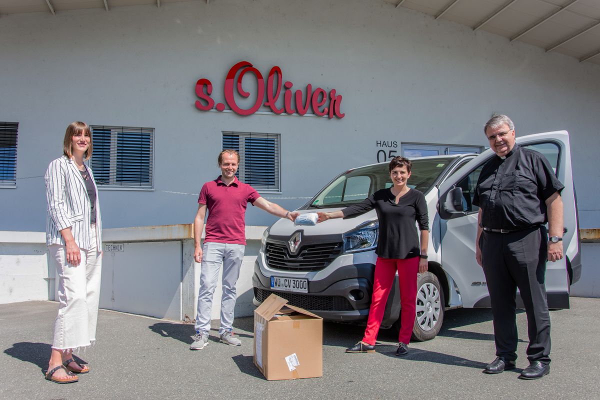 „Wir sind sehr dankbar, wenn uns lokale Unternehmer auf solche Weise unterstützen und damit auch Wertschätzung für unsere Arbeit ausdrücken“, erklärte Domkapitular Clemens Bieber, Vorsitzender des Caritasverbands der Diözese Würzburg, bei der Übergabe am Dienstag, 23. Juni. „Wir freuen uns sehr, dass wir die Caritas in dieser herausfordernden Zeit unterstützen können“, sagte Dries Jennen von s.Oliver, der die Spende koordiniert hatte. „Die Güter werden auf verschiedene Einrichtungen verteilt und kommen so direkt dort an, wo sie am dringendsten benötigt werden. Das ist uns wichtig.“ Im Namen der Caritas-Mitarbeiter, die das Schutzmaterial in ihrer täglichen Arbeit nutzen werden, dankte Sonja Schwab den Vertretern von s.Oliver. „Gerade für unsere Altenpflegeeinrichtungen ist diese Spende eine echte Hilfe“, betonte die Fachbereichsleiterin Gesundheit und Alter. Sie wird mit ihrem Team die Verteilung der Güter an die sozialen Einrichtungen in Unterfranken organisieren. Zugleich erinnerte sie daran, dass die Beschaffung von Masken und Mund-Nasen-Bedeckungen in den vergangenen Monaten für die Einrichtungen oft nicht nur schwierig, sondern auch sehr kostspielig war. „Unsere Mitarbeiterinnen und Mitarbeiter leisten seit Monaten herausragende Arbeit. Durch Spenden wie die von s.Oliver werden sie ein wenig entlastet, und dafür sind wir sehr dankbar.“