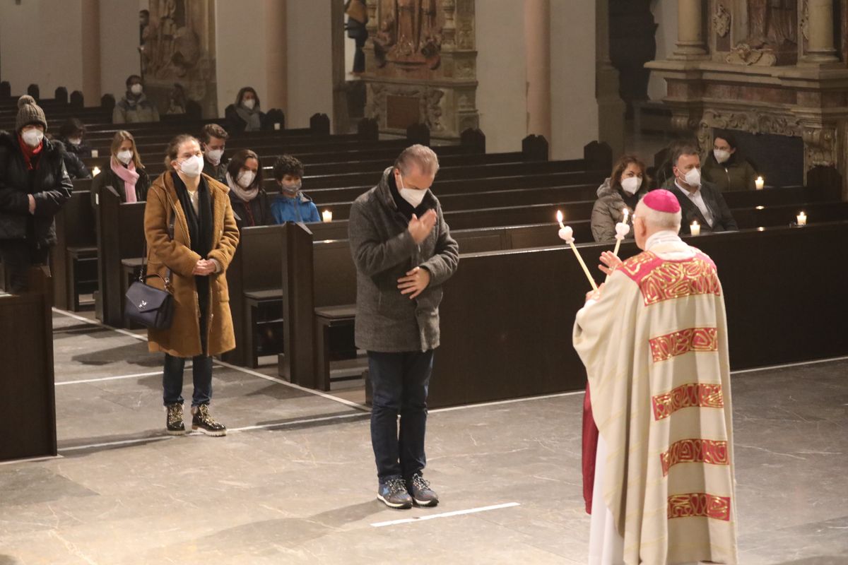 Zu Beginn des Gottesdiensts segnete Weihbischof Ulrich Boom in der Nähe des Menoraleuchters Kerzen.
