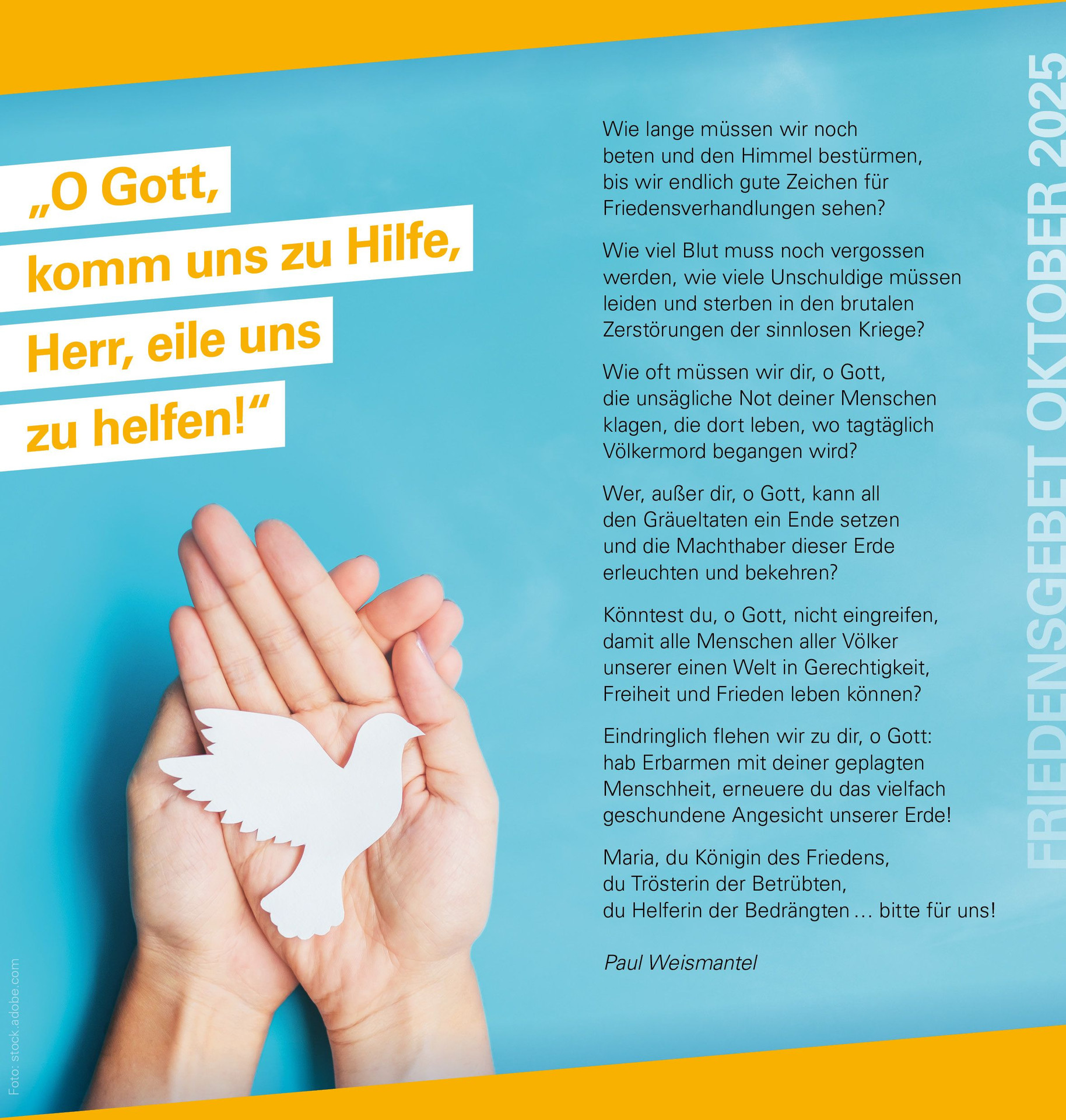 Die Ehe- und Familienseelsorge im Bistum Würzburg bietet Ihnen mit dieser Handreichung eine Vorlage, wie Sie in der Familie miteinander um den Frieden beten können.