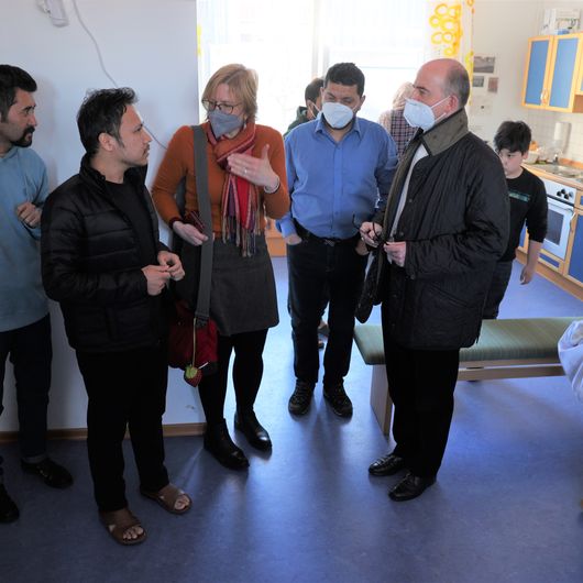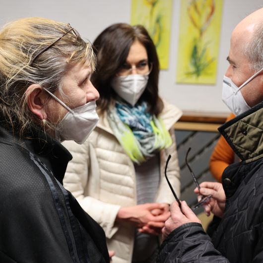 Die Caritas koordiniert die Hilfe für die Menschen aus der Ukraine in den drei Unterkünften. „Momentan kommen jeden Tag Ehrenamtliche von uns mit Dolmetschern vorbei und fragen nach, welche konkrete Hilfe die Menschen brauchen, damit wir bedarfsgerecht reagieren können.“ Beispielsweise bringen Helfer der Malteser die Menschen aus der Ukraine mit Kleinbussen in den Kleidermarkt der Caritas in Bad Neustadt, damit diese sich mit Bekleidung versorgen können. Die Caritas-Sozialstationen kümmern sich, wo benötigt, um die pflegerische Versorgung. „Was uns die Menschen aus der Ukraine alle fragen: Wo gibt es einen Deutschkurs und wie bekomme ich eine Arbeit?“, berichtete Ochs.