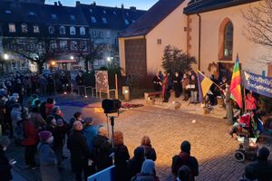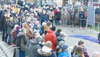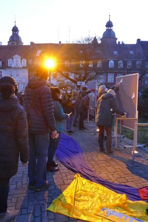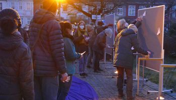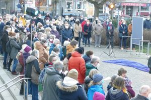 Dazu aufgerufen hatten verschiedene Dienststellen des katholischen Dienstleistungszentrums wie das Martinusforum und die Betriebsseelsorge gemeinsam mit der evangelischen Christusgemeinde, der Diakonie, der Friedensbewegung „pax christi“ und den Aschaffenburger Friedenstrommlern. In Gebeten, Texten und Liedern drückten die Veranstalter ihre Sehnsucht nach Frieden und die Forderung nach der sofortigen Beendigung der Gewalt in der Ukraine aus. Aus Papier ausgeschnittene Hände wurden mit Wünschen und Gebeten beschriftet und auf Pinnwänden als Menschen-Hände-Kette befestigt. Diese Collage wird in den kommenden Wochen im Foyer des Martinushauses zu sehen sein.