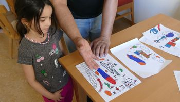 Der 37-jährige Pädagoge ist selbst noch schockiert, dass es in Europa direkt vor der Haustüre wieder einen Krieg gibt. „Wir sind ja eine Generation, die in Friedenszeiten und stabilen Demokratien aufgewachsen ist“, sagt er. Für ihn gehört es ganz ohne Frage zum Auftrag der Christen, sich um Menschen zu kümmern, die Hilfe brauchen. Magsood Nawsaz ist unendlich dankbar für die Hilfe, die er im Jugendhaus und überhaupt hier in Deutschland erfährt. Sein Sohn hat noch ein anderes Bild gemalt, das ein buntes Haus in der Sonne zeigt. Das Bild heißt „Friede“, erklärt er.